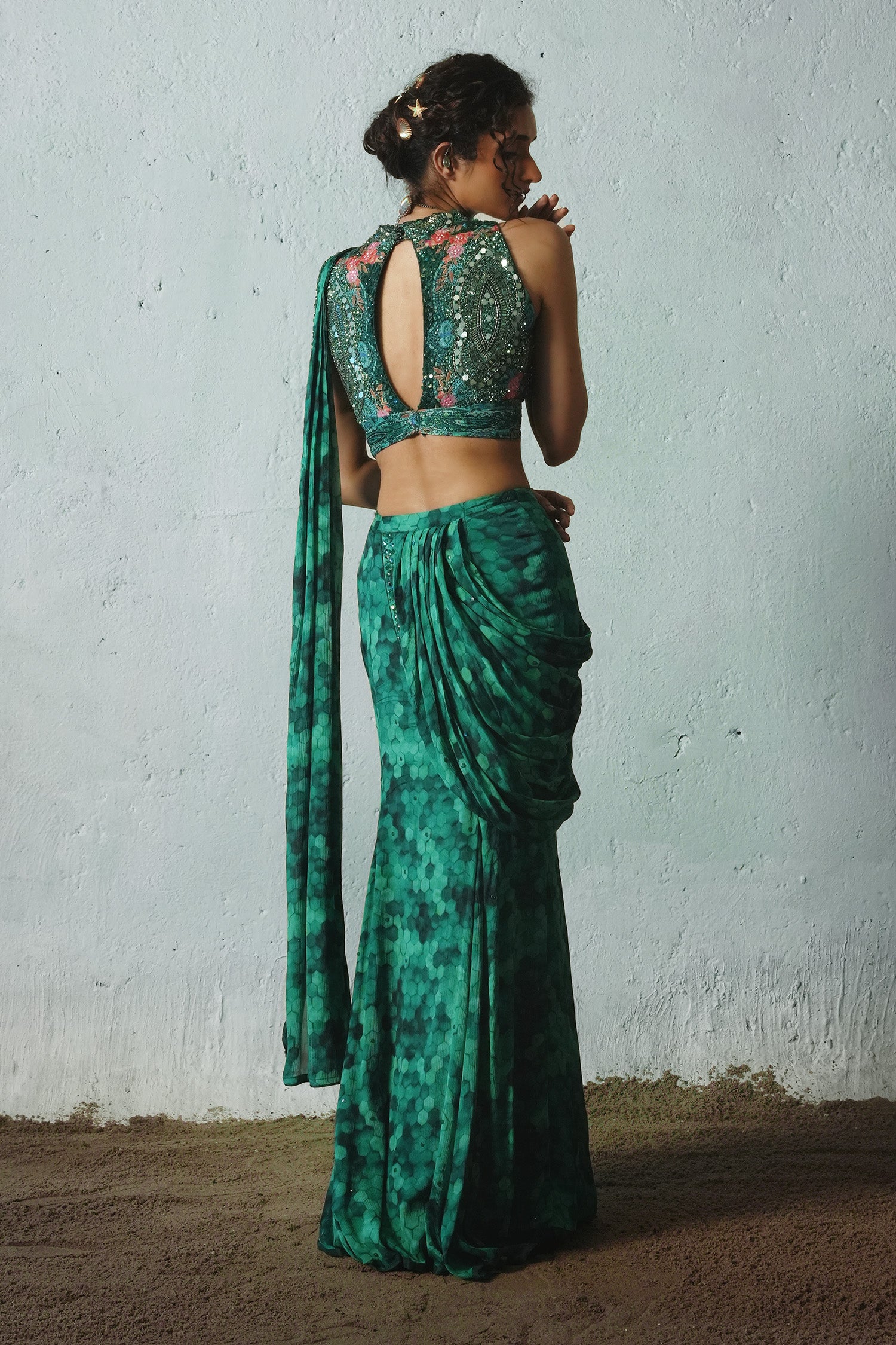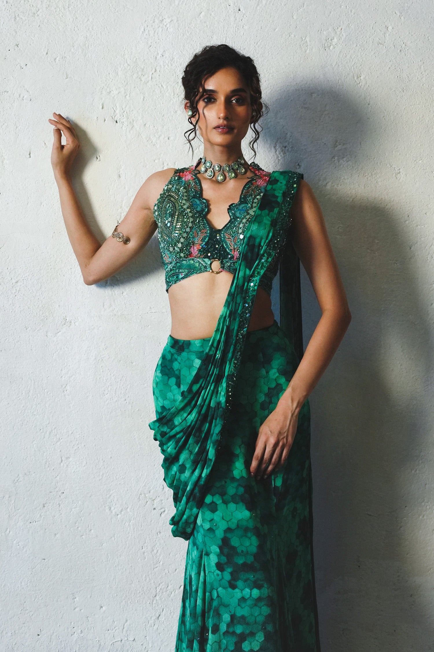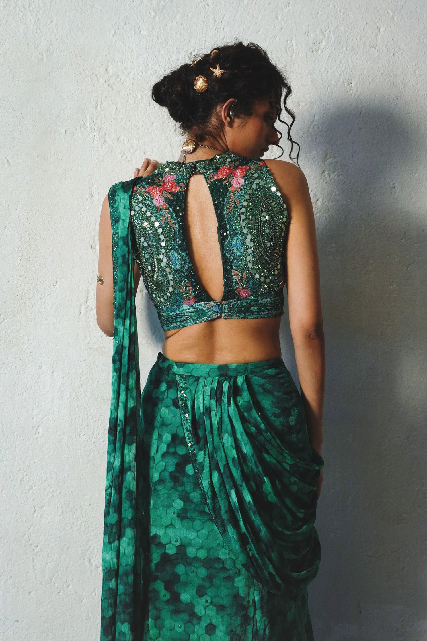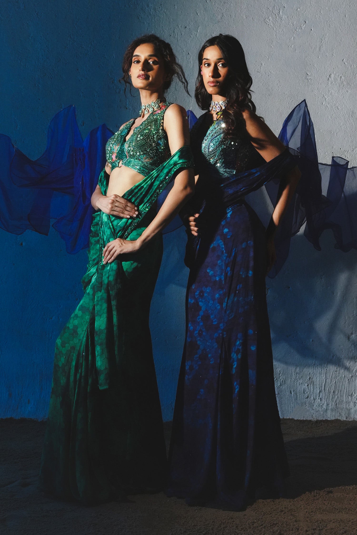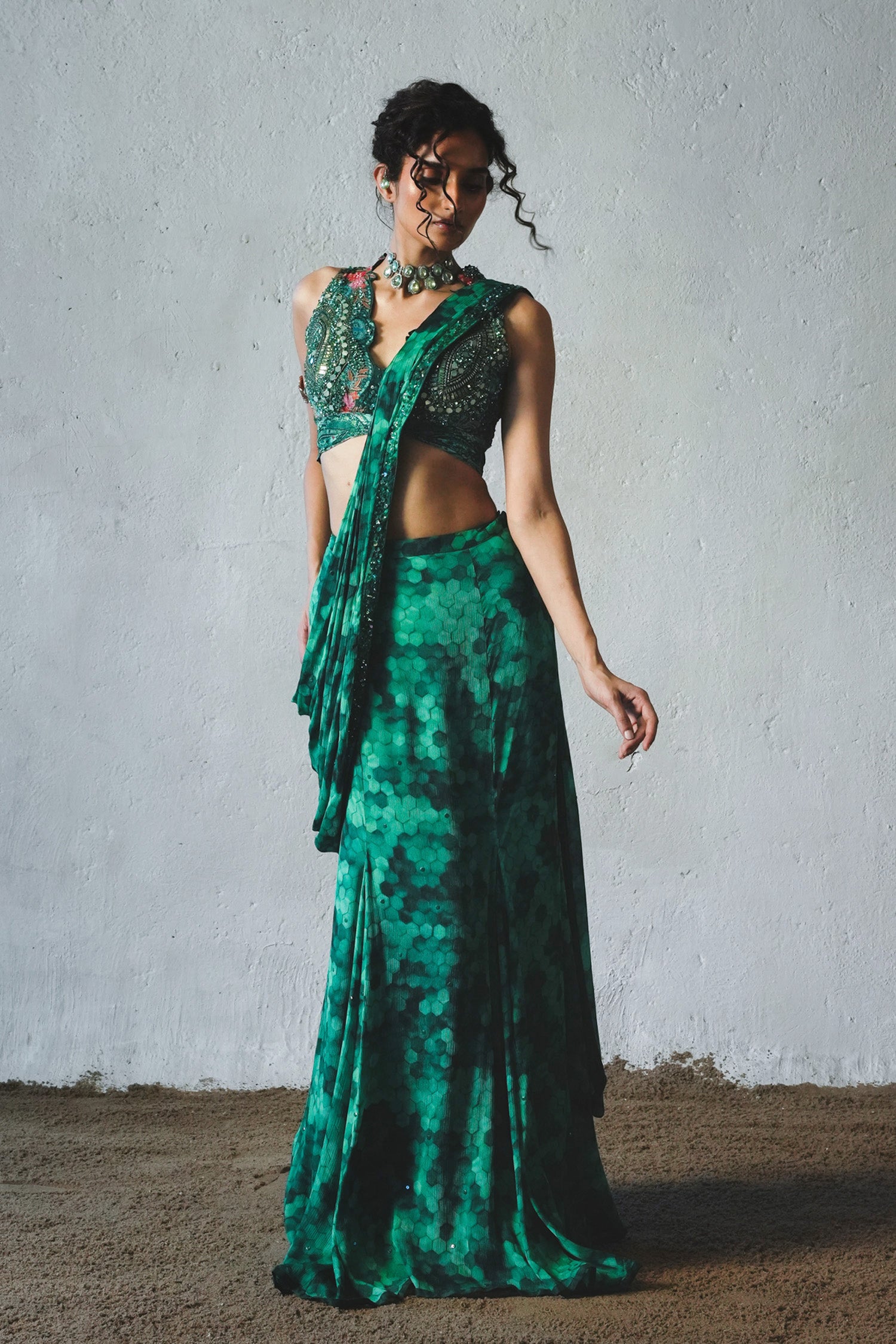 A Statement pre-draped saree adorned with exquisite hand embellished detailing
